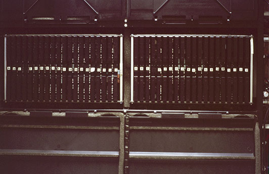 After a few more of these set switches / press button / look at lights (during which the other three techs kept completely silent, after unintentionally triggering the previous outburst) he opens the logic gate (the panel with several hundred circuit boards as you can see in the other pictures above), goes around to the wiring side and fishes out a specific tri-lead, yanks it out and says “Change this!”. His next words were “YOU! Drive me to the airport – I have to go to Saudi Arabia!”.