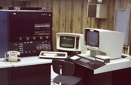 For reference, this is the IBM 370/138 in question. Telephone unintentionally added for scale. And that’s just the CPU, which weighs 2,350 pounds (yes, well over a ton for just the CPU with half a megabyte of memory – we’ve come a long way since then).